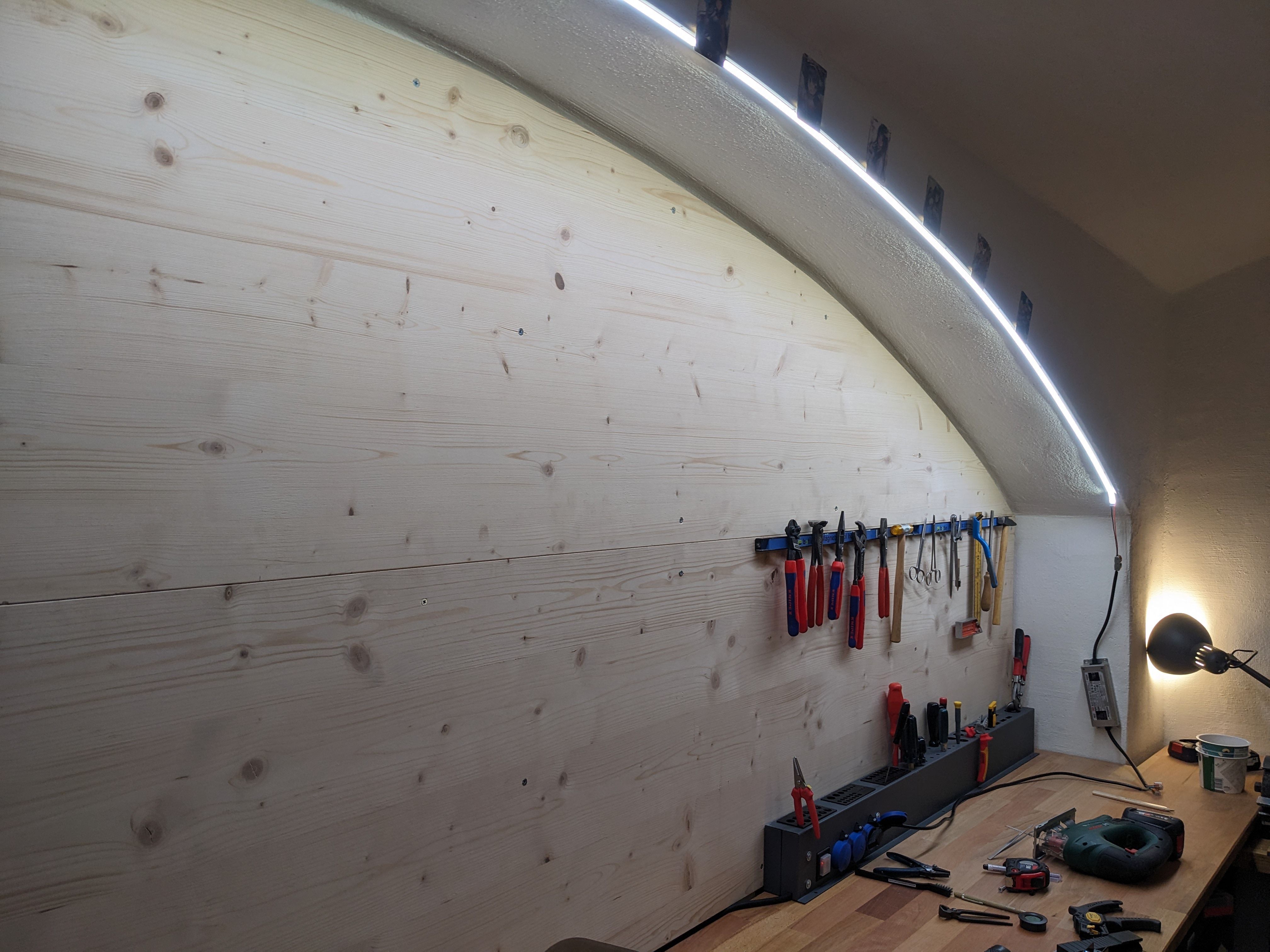 - New lighting prototype done for the workshop - 80 watts of LED strips on some angle bracket ^^